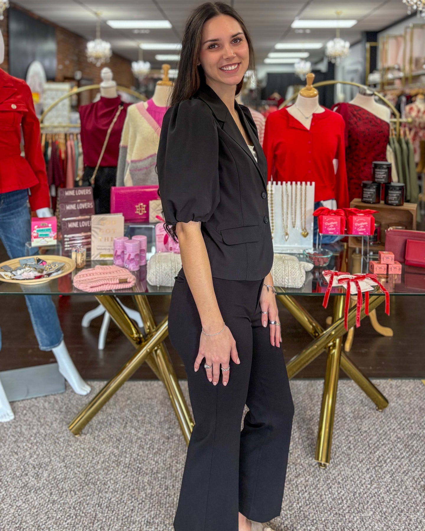 This Liverpool Los Angeles balloon sleeve blazer brings elevated drama to classic tailoring. Crafted from a lightweight, textured stretch woven fabric, it offers effortless movement with a refined feel. The notch collar and two-button front create a polished, structured silhouette, while the voluminous sleeves add a fashion-forward edge. Finished with front flap pockets and an unlined design for easy layering, this blazer is the perfect blend of bold and versatile.