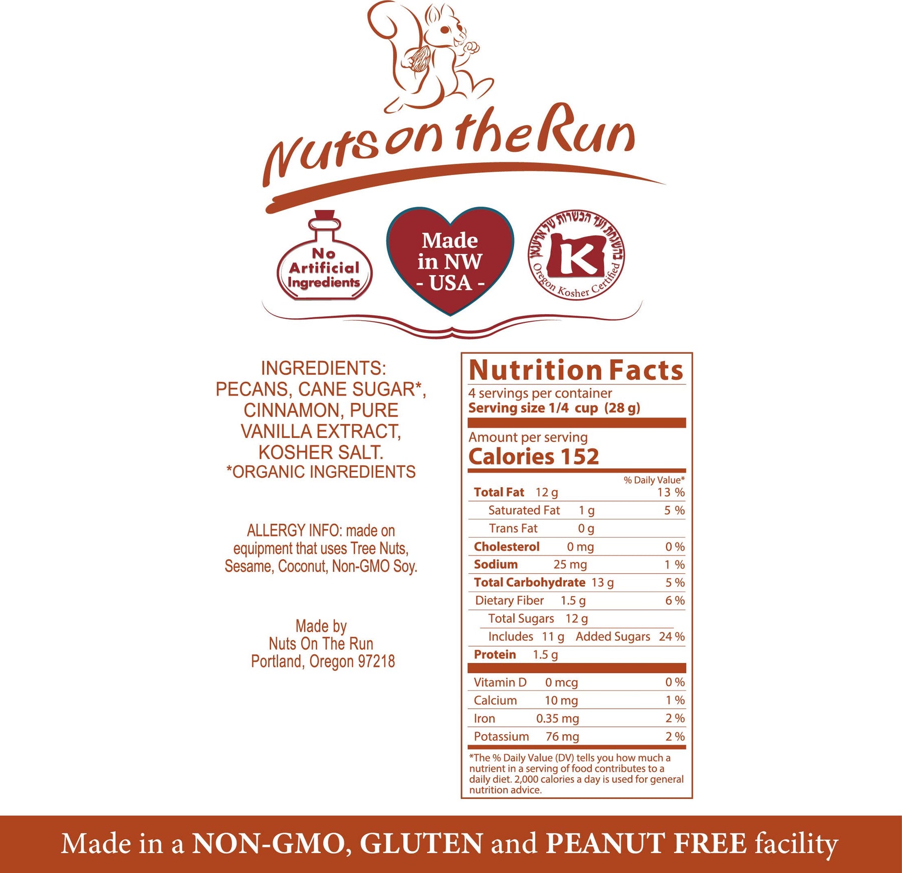 Freshly roasted in small batches, these pecans are coated in a cozy blend of pure vanilla, fresh cinnamon, and organic cane sugar for a crisp, aromatic sweetness. Made in the USA with all-natural, preservative-free ingredients, they’re Kosher-certified, non-GMO, gluten-free, vegan, and peanut-free—an easy indulgence you can feel good about. Perfect for busy days or relaxed moments, this 4 oz bag delivers a comforting boost of energy with every bite
