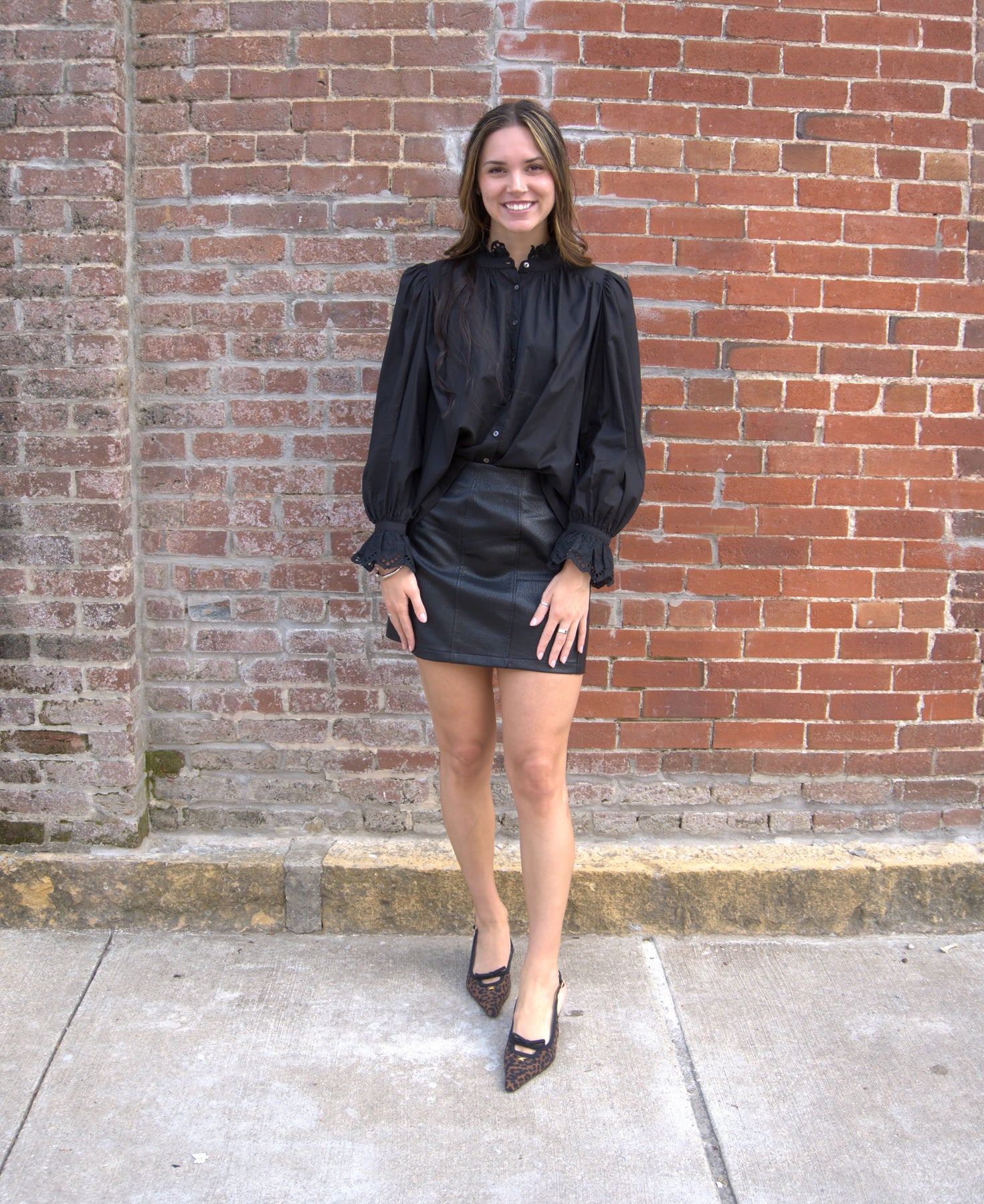 Look & Feel: Delicate ruffle eyelet detailing adds a touch of whimsy, while the band collar with button-front closure gives a crisp, refined finish.