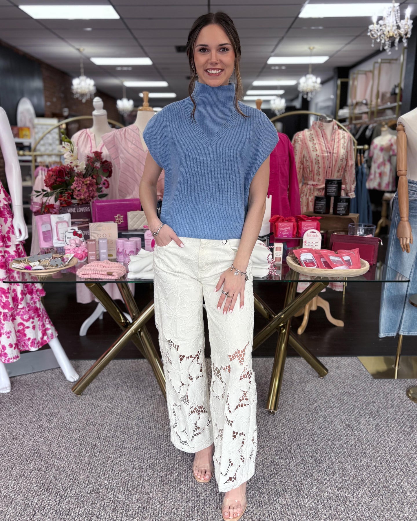 Crafted from delicate sheer lace with a fully lined interior, these pants offer beautiful texture with confident coverage. The 30” inseam delivers a polished full-length finish, perfect for pairing with heels or dressy flats. Ideal for special occasions or elevated everyday styling, this piece blends comfort with unmistakable elegance.
