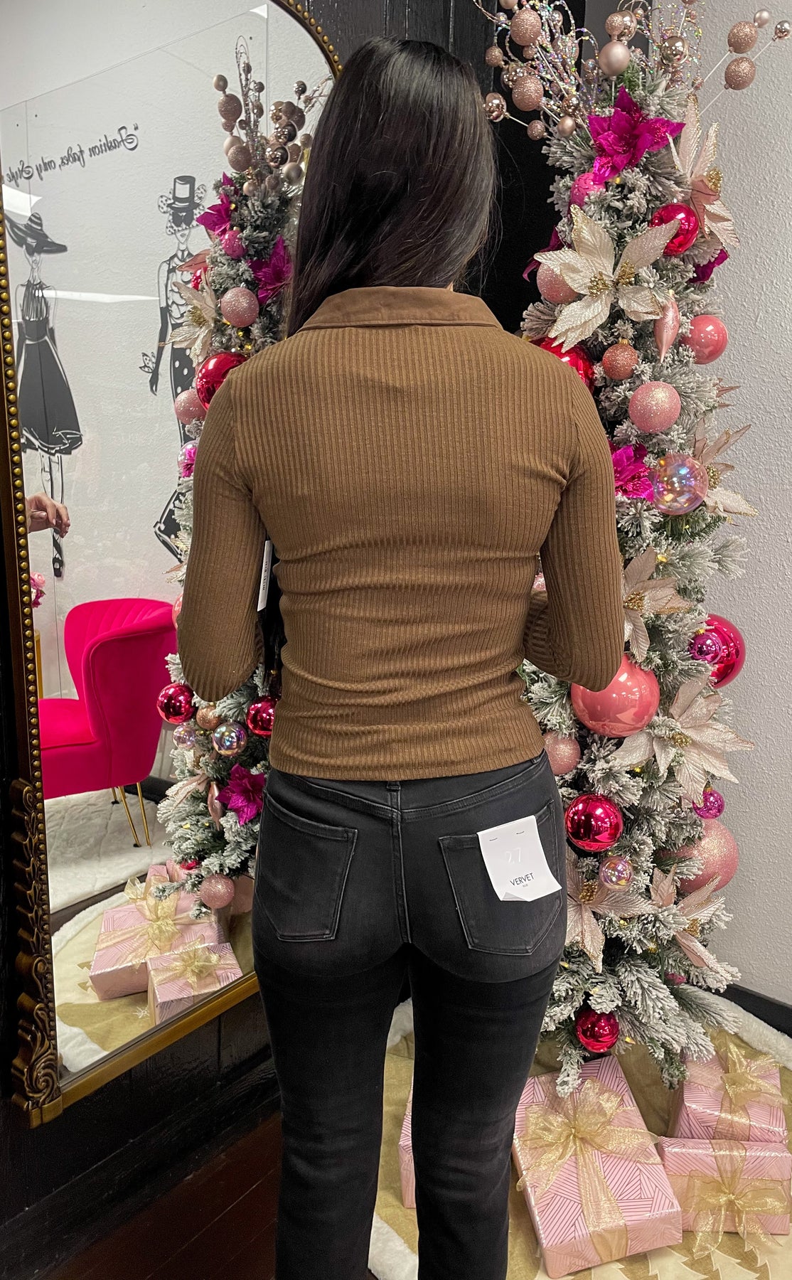 Meet your new go-to layer. This lightweight brown sweater top is crafted from a soft, breathable knit that feels as effortless as it looks. The timeless collared neckline adds a touch of polished charm, while the relaxed silhouette keeps it comfortable for all-day wear. Easy, refined, and endlessly versatile—this is the perfect blend of cozy and elevated style for every season.