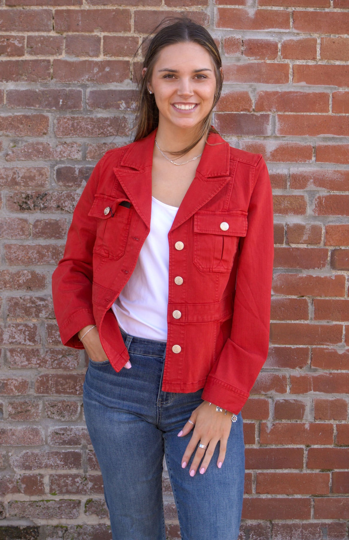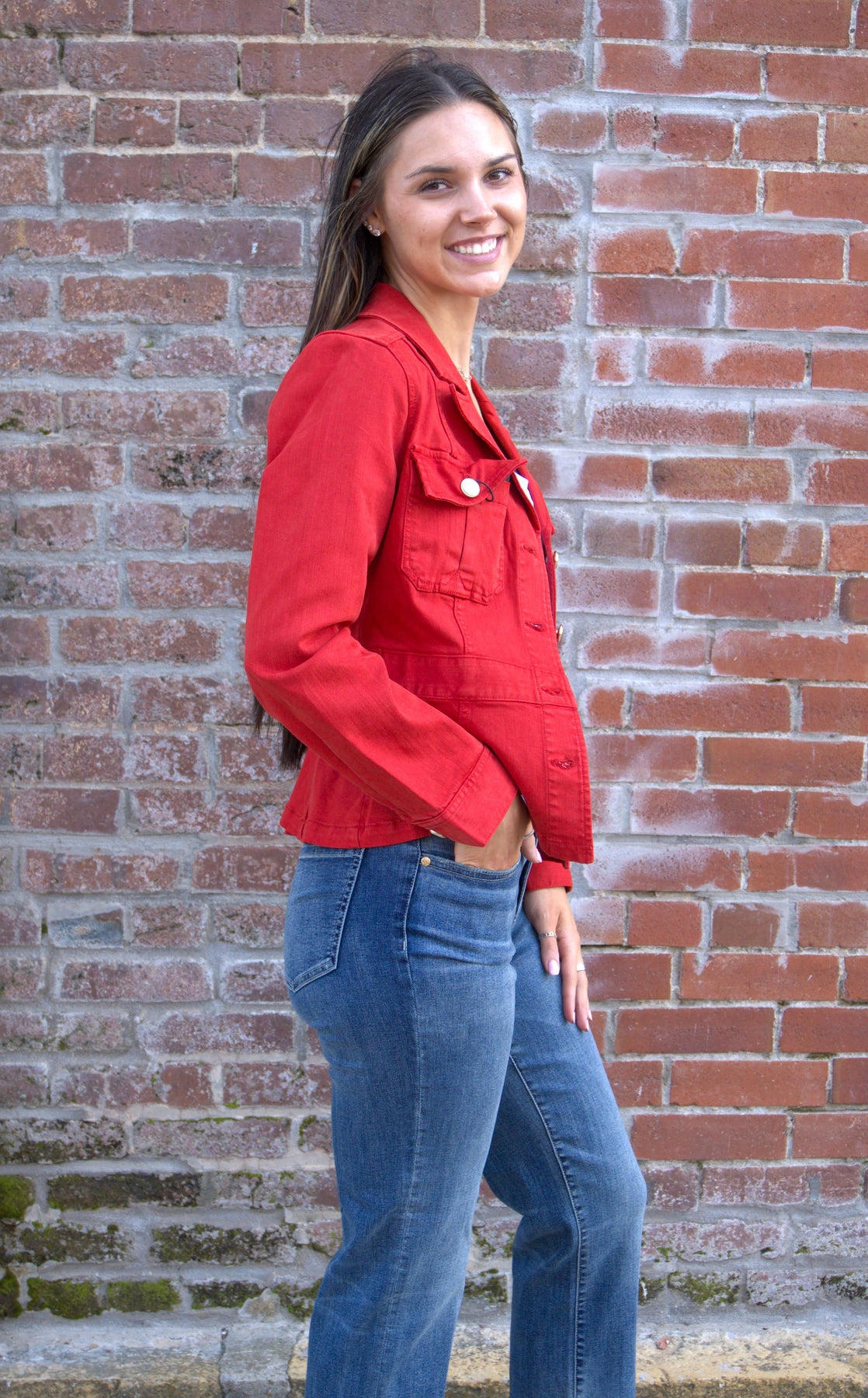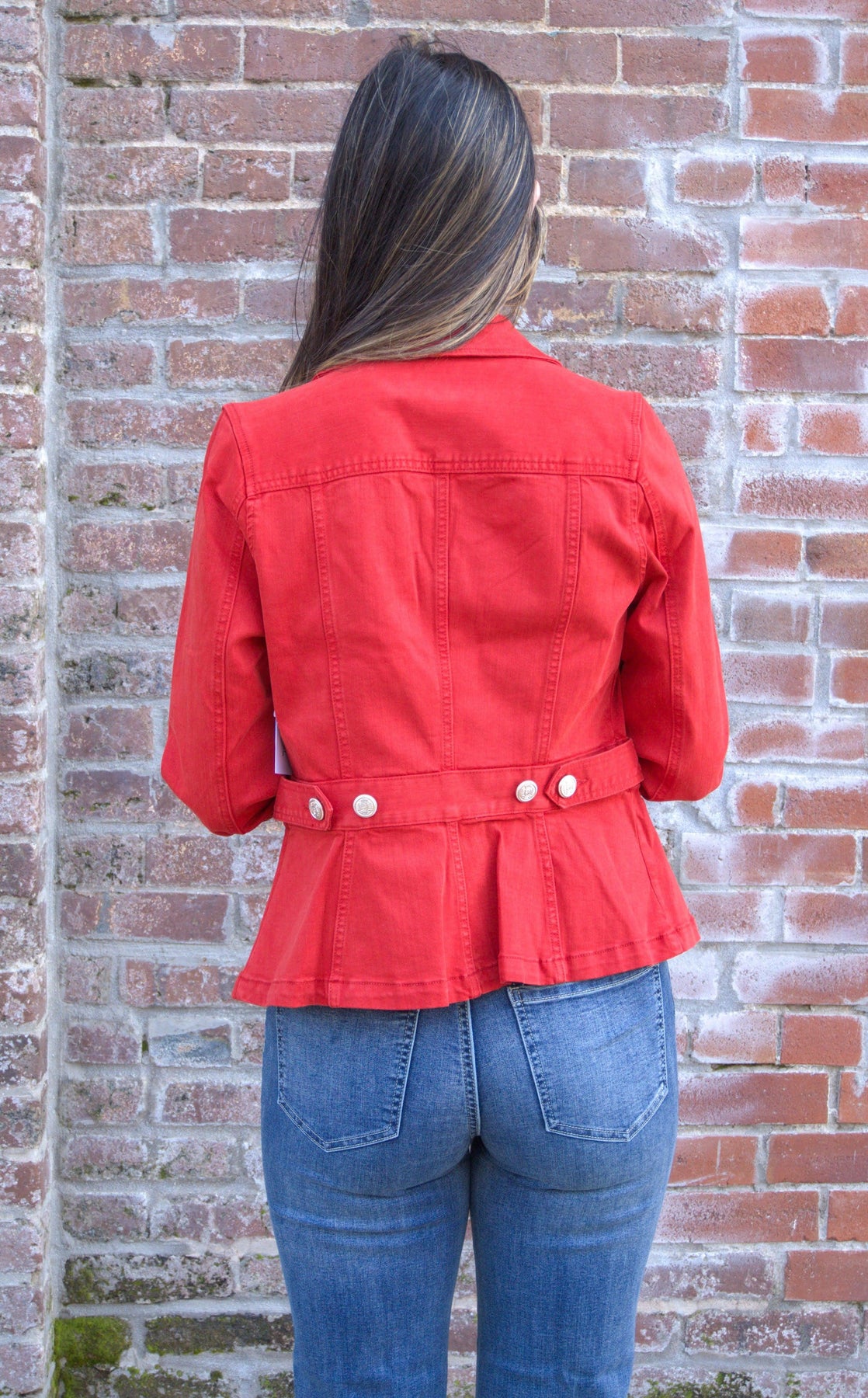 Turn heads in the Liverpool Red Peplum Jacket, a statement piece that blends modern sophistication with timeless charm. Crafted from Liverpool’s signature stretch fabric, this jacket offers a flattering fit with structured seams and a subtle peplum hem for a feminine silhouette. The tab detail adds a touch of tailored polish, making it perfect for both professional looks and chic weekend wear. Pair it with trousers or denim for an effortlessly elevated outfit that shines in any season.