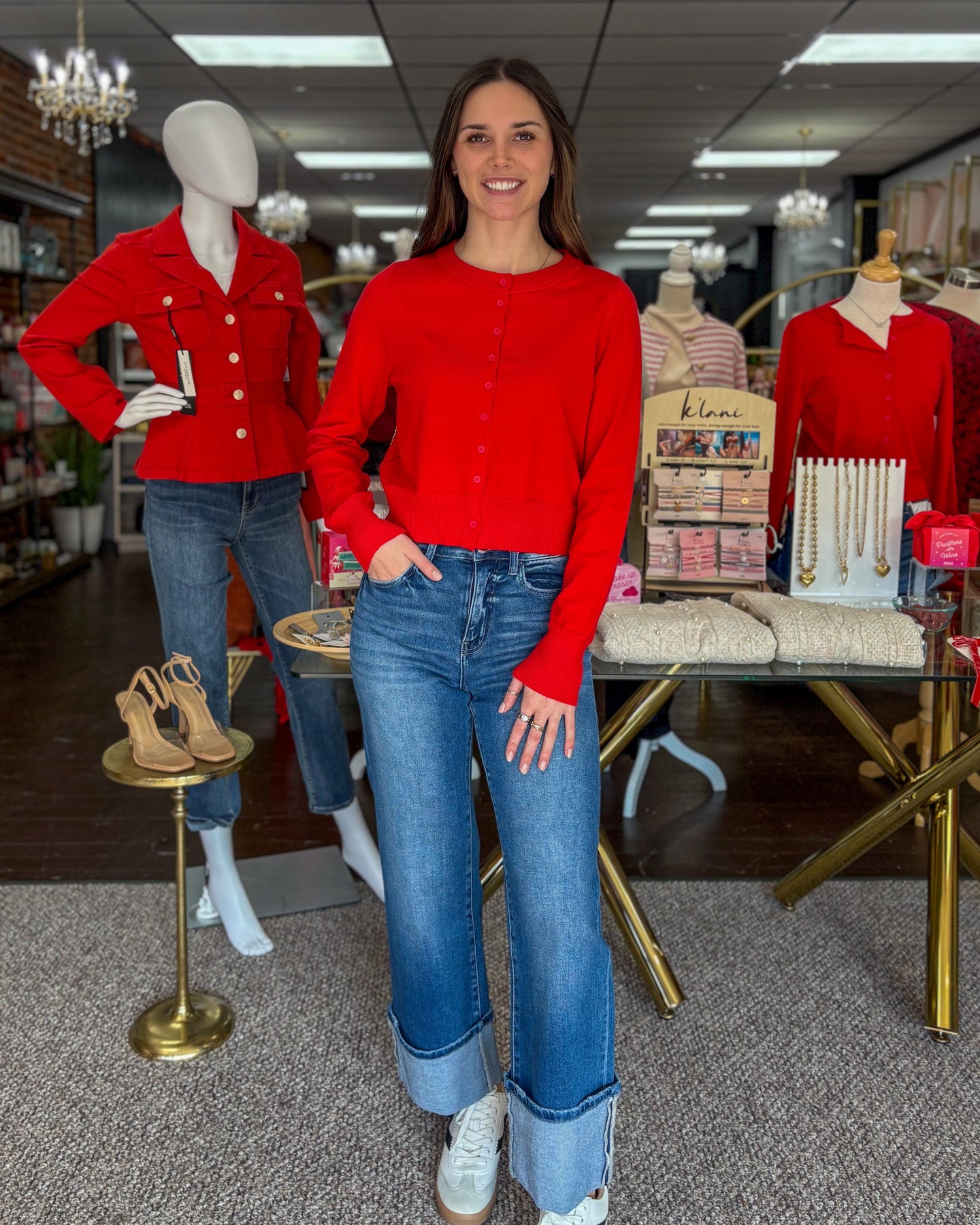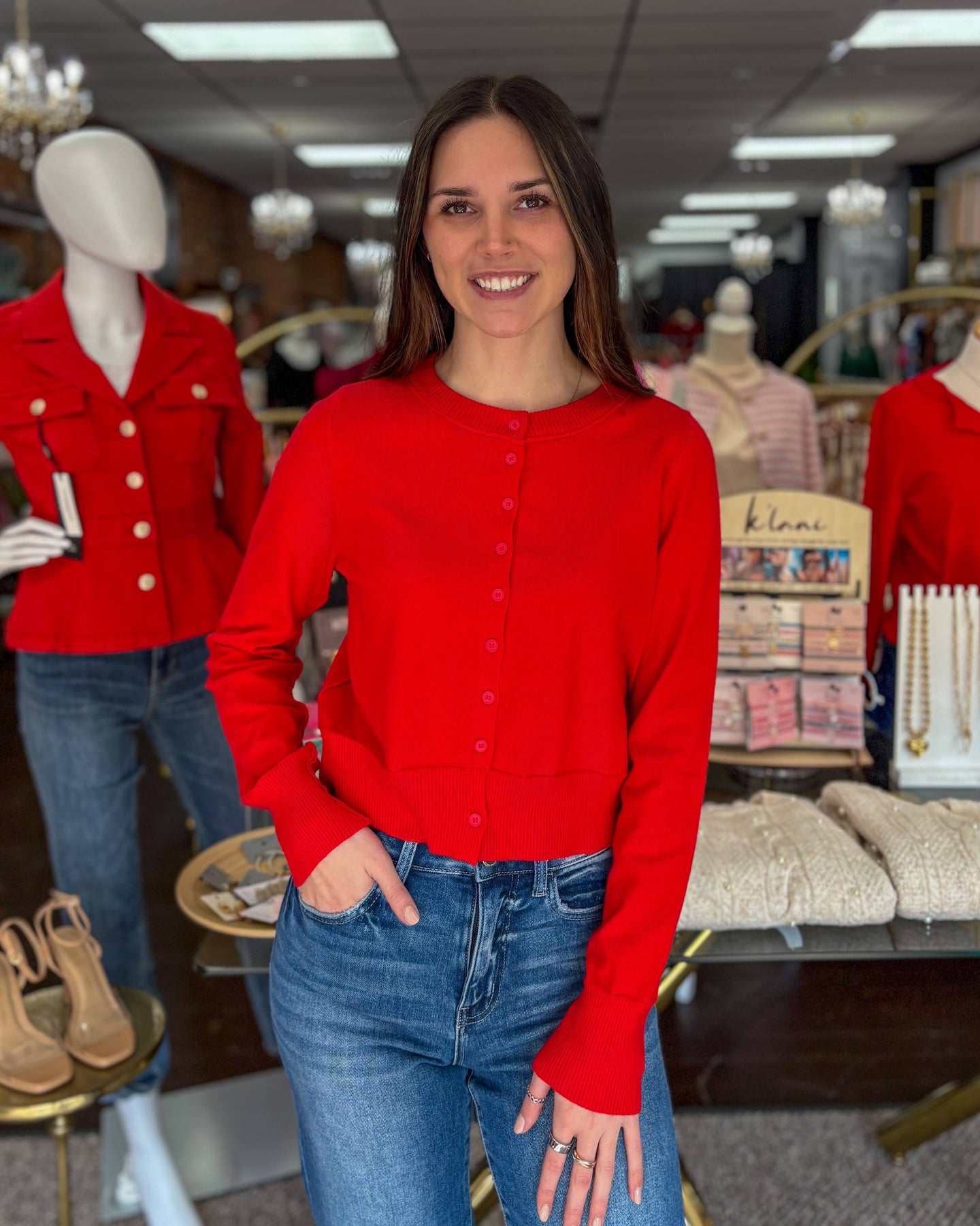 Your new favorite layer is here. This easy knit cardigan features a classic button front, ribbed trim, and a subtly cropped silhouette for a flattering finish. Lightweight yet cozy, it’s perfect for casual outings or cozy days in—wear it solo or layered for easy, everyday style.