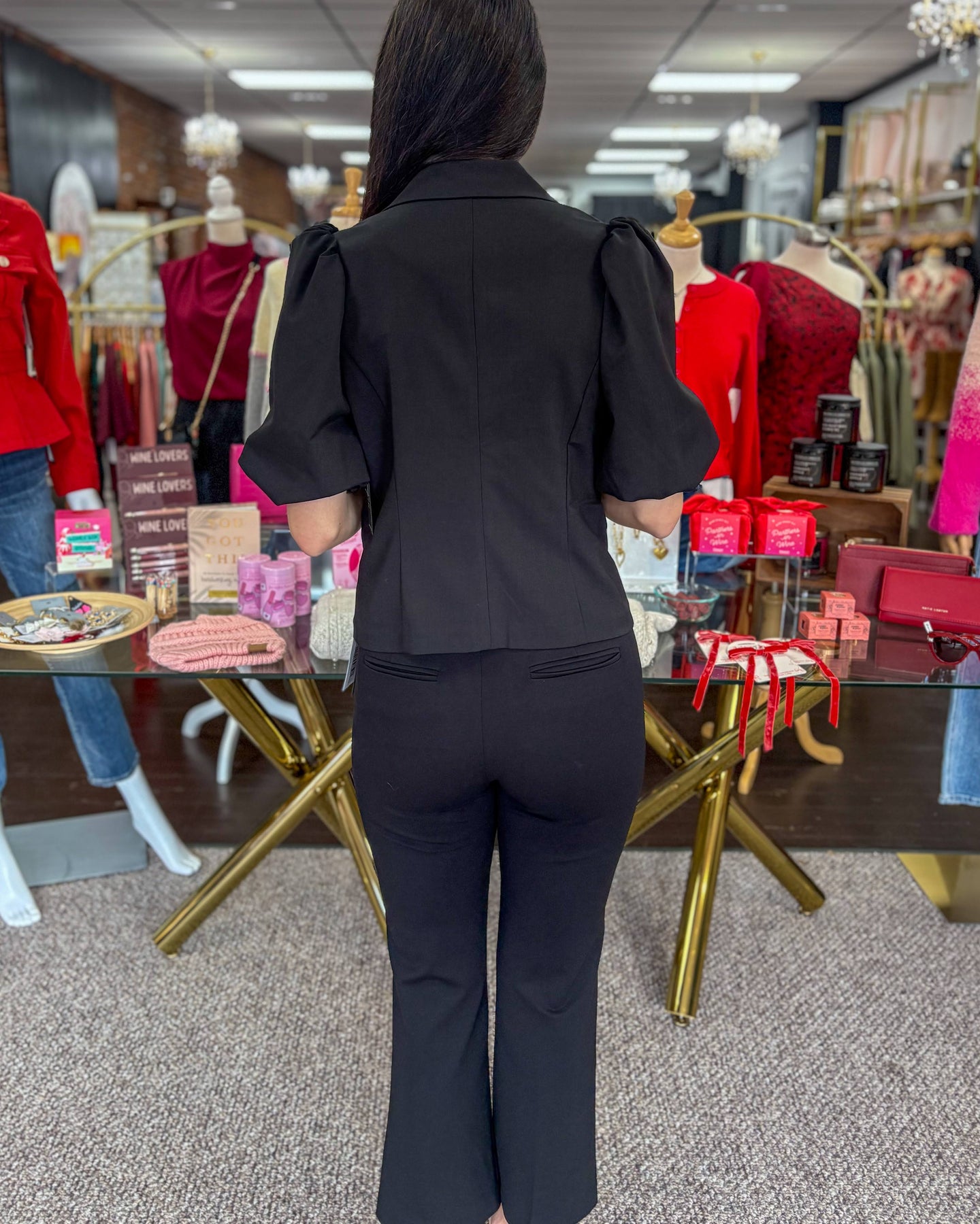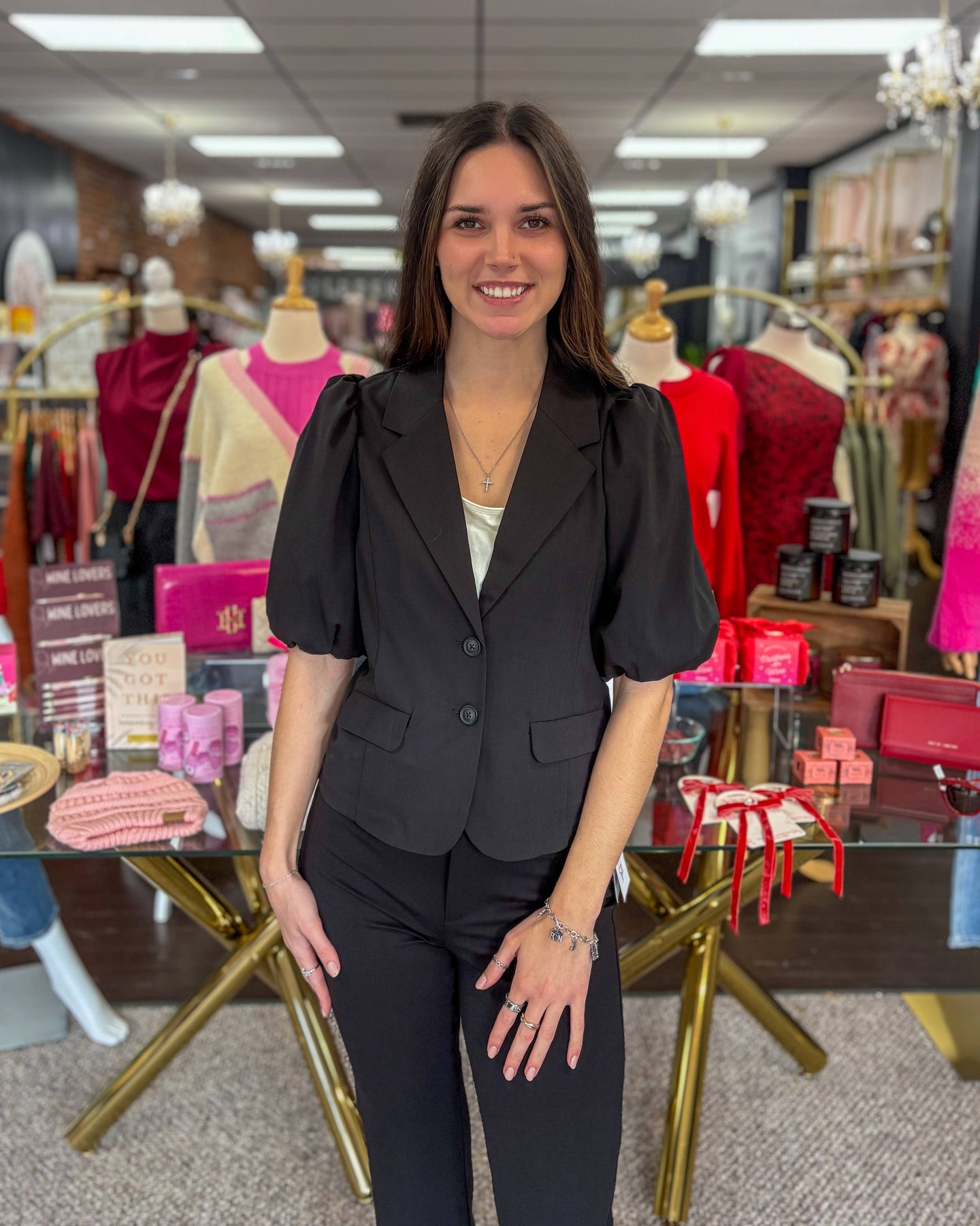 This Liverpool Los Angeles balloon sleeve blazer brings elevated drama to classic tailoring. Crafted from a lightweight, textured stretch woven fabric, it offers effortless movement with a refined feel. The notch collar and two-button front create a polished, structured silhouette, while the voluminous sleeves add a fashion-forward edge. Finished with front flap pockets and an unlined design for easy layering, this blazer is the perfect blend of bold and versatile.