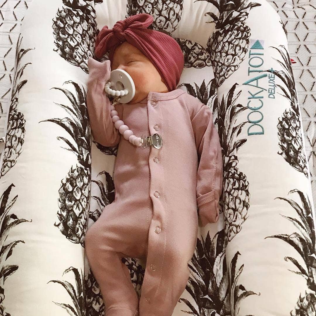 Ali+Oli Silicone Pacifier Clips are the perfect gift for baby, keeping pacifiers and teething toys clean, safe, and within reach. Made from 100% BPA-free, food-grade silicone, they feature soft, durable beads and a rust-free stainless steel clasp that securely attaches to clothing or blankets without damage. With a safe 8” length and a braided cord with safety loop, these clips are both stylish and practical for everyday use.