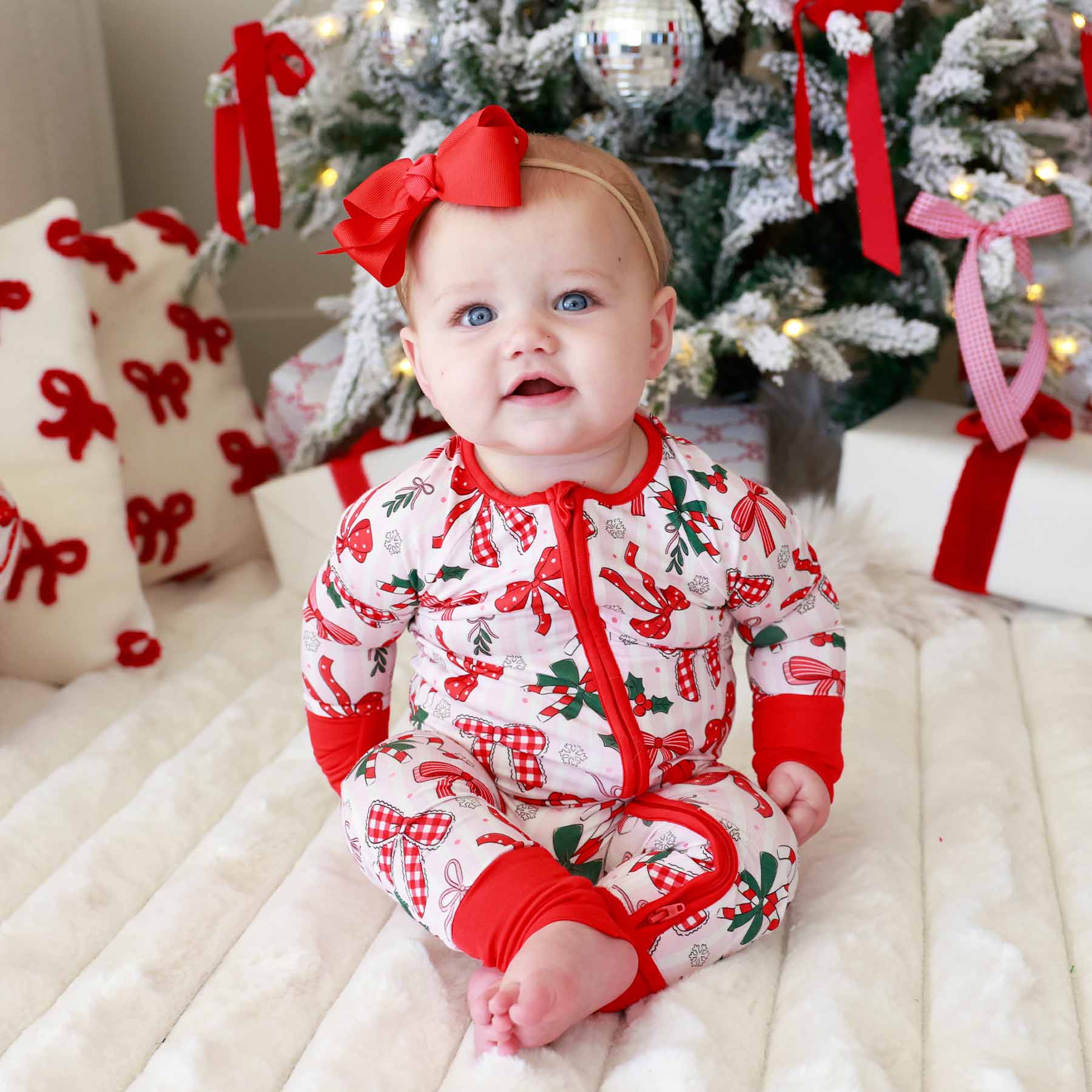 Bow What Fun Convertible Zip Romper-Bamboo Viscose,Caden Lane,Children & Tween,Children & Tweens,holiday,Infant to 6,Rompers,Zip Front-0-3 M-[option4]-[option5]-[option6]-Bella Bliss Boutique in Texas