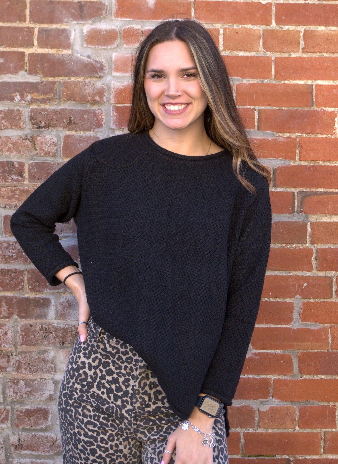 Long Sleeve Pullover Sweater-Black,Cardigan Sweater,clothing,Lovestitch,Pullover,rolled neckline,Side Slits,Sweater,Sweaters,Top,Tops,Women,women&